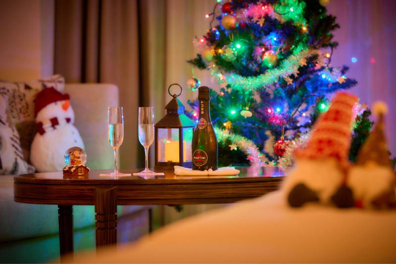 プランには乾杯用のスパークリングハーフワインやクリスマスデザインのマグカップをプレゼントいたします。大切なパートナーやご友人と特別な思い出をお過ごしください。